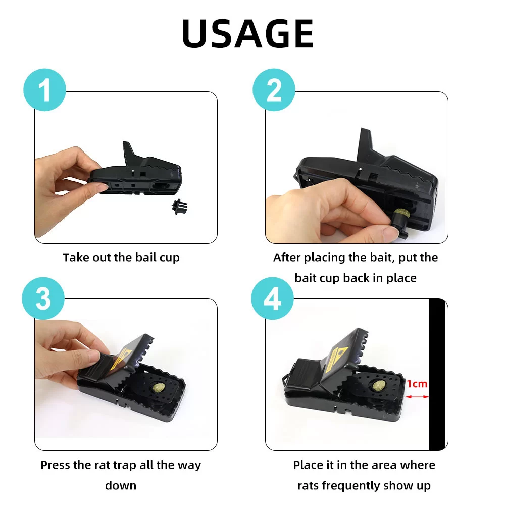 Our plastic rodent rat trap is praised for its strong spring mechanism, durable design, and user-friendly setup. Customers appreciate how it provides a quick and hygienic solution for rodent control.