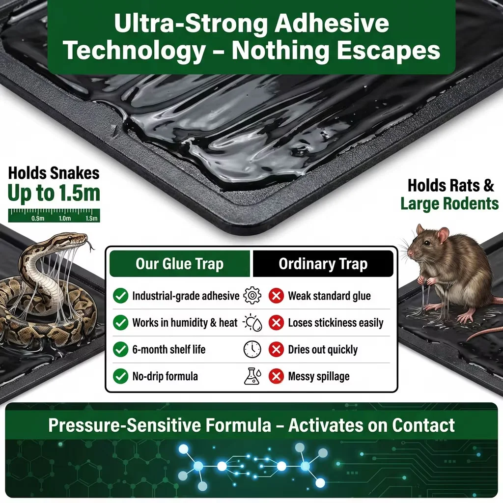 Highstrength thick adhesive, strong stickiness, effectively catches mice, snakes, rats and other pests.