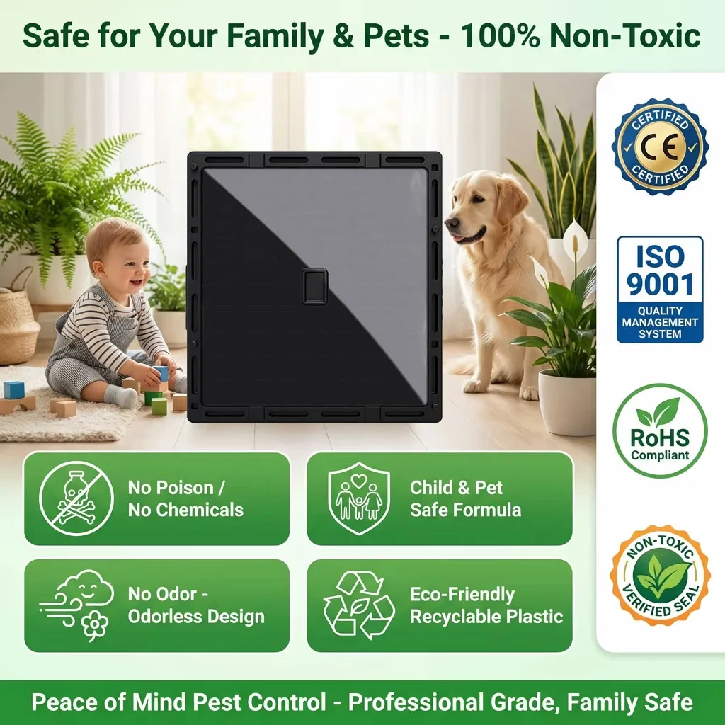 Ideal for catching mice, rats, snakes, cockroaches and other crawling pests, clean and hygienic.